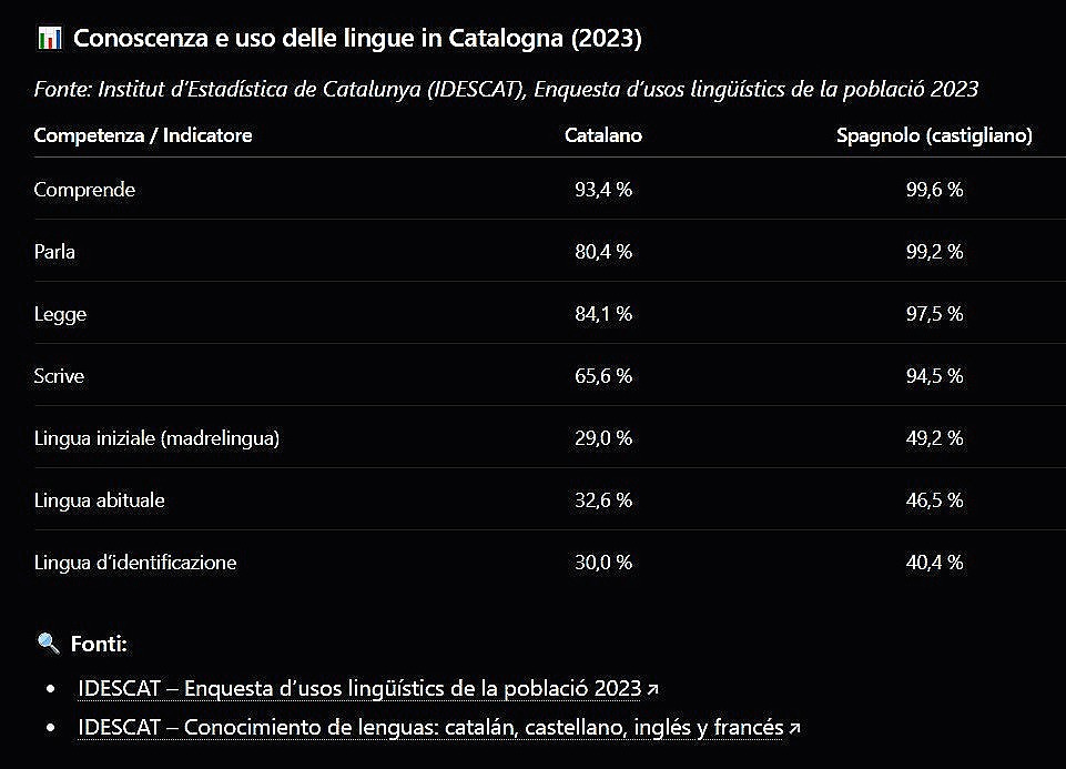 2️⃣ Il castigliano (spagnolo) è comunque obbligatorio come materia di studio. Tutti gli studenti catalani devono studiarlo e impararlo, e il sistema scolastico deve garantire che al termine del percorso abbiano piena competenza sia in catalano che in castigliano.