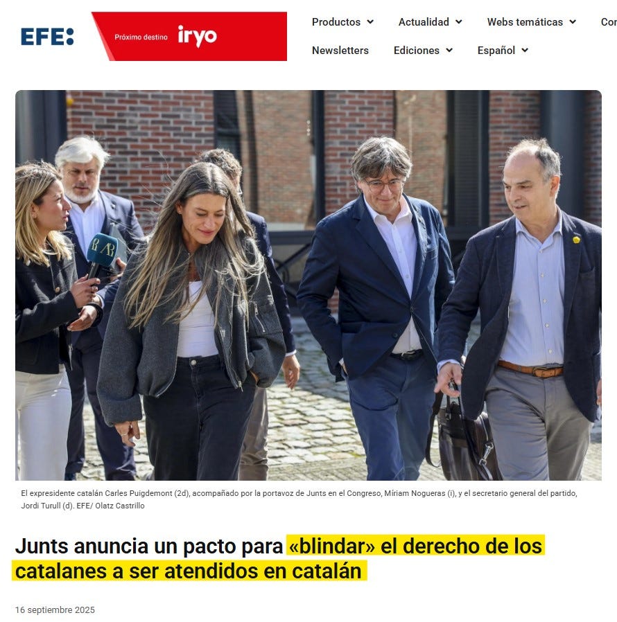 Con queste parole, il 16 settembre 2025, Junts per Catalunya (Insieme per la Catalogna) ha celebrato l’accordo con il PSOE (Partito Socialista Operaio Spagnolo) per introdurre modifiche al disegno di legge che regolamenta i servizi al cliente. Questa modifica consentirà “di garantire il diritto dei cittadini a essere serviti in catalano dalle aziende”, secondo i sostenitori di Puigdemont. Tuttavia, questa protezione “è irresponsabile e comporterà costi aggiuntivi”, avvertono i dirigenti aziendali.